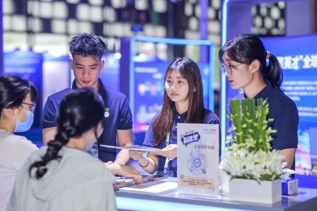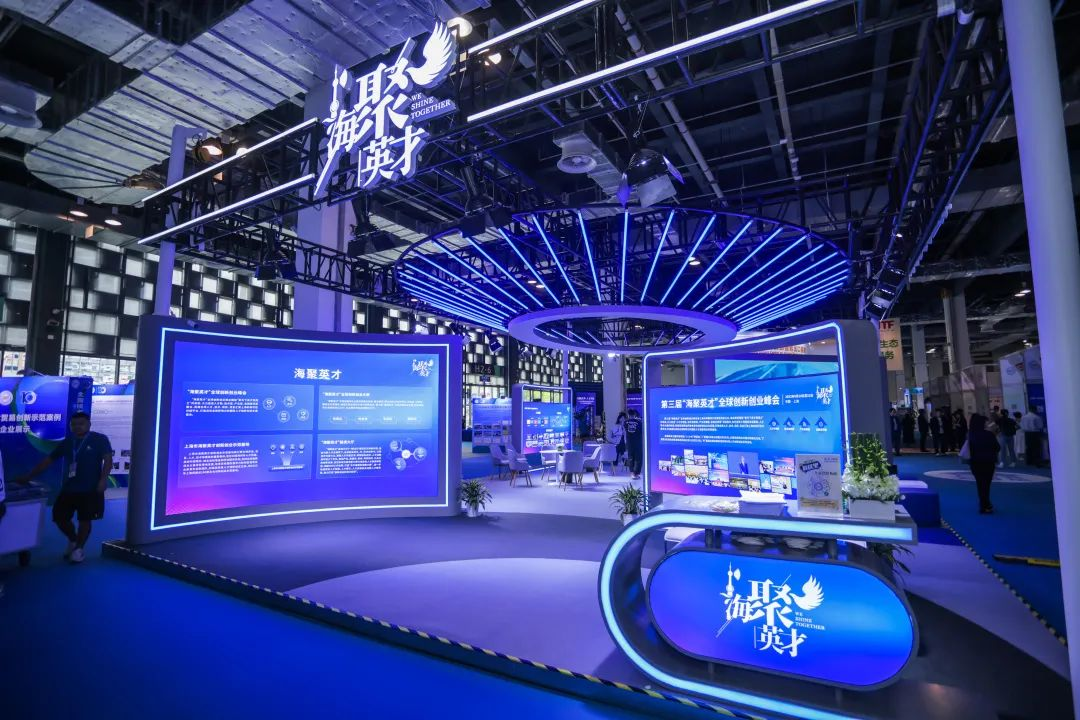 “海聚英才”展位位于上交会创新生态展区核心位置,通过精心设计的展台和丰富的展示内容,吸引了众多参观者的目光。
