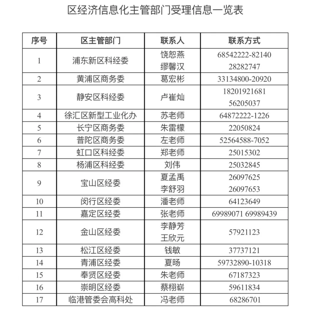 区经济信息化主管部门受理信息一览表