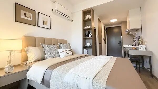 ●配套设施:大堂公区有健身房、衣物烘干房、茶水间、会议室、休息区等;房间配套有家具及家电齐全、1.5*2米床及床垫、书桌、椅子、燃气、冰箱、洗衣机、空调