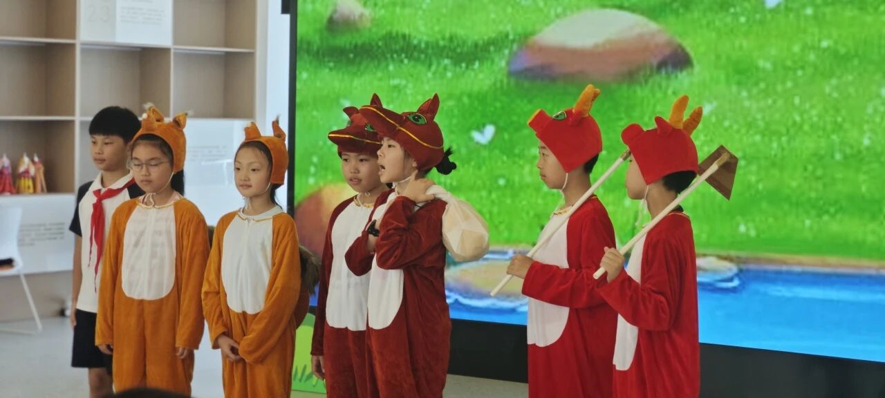 舞台上,南码头小学的孩子们化身小马与松鼠,用童真与热情演绎经典课本剧《小马过河》,稚嫩的动作与认真的神情,让现场观众频频会心一笑。