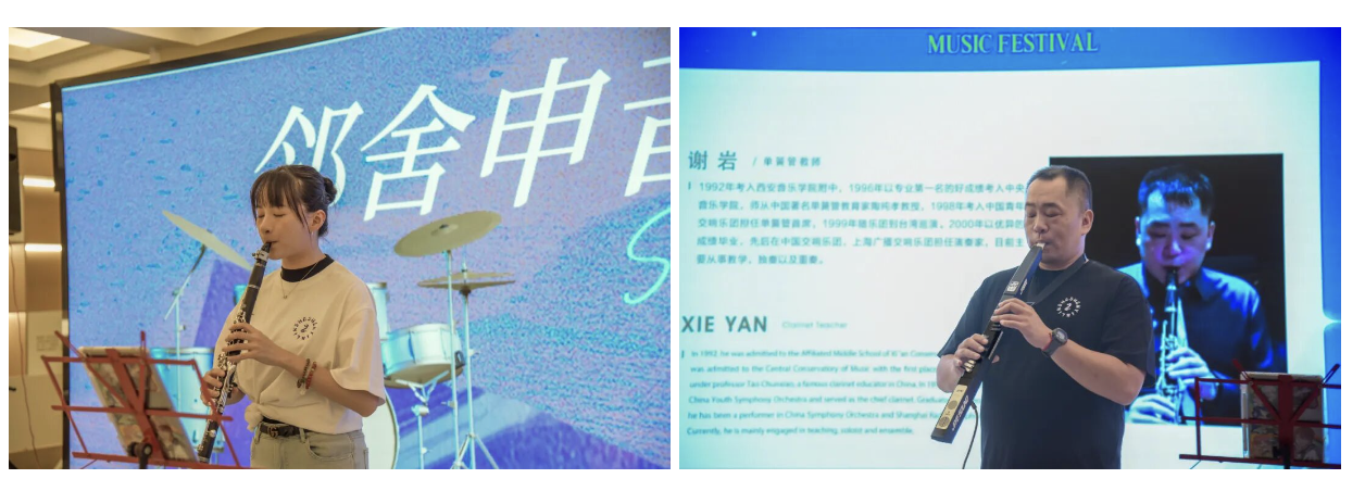 单簧管演奏家谢岩、王蕴奇带来了专业级演绎,让乐声在江畔缓缓流淌,时而轻快灵动,时而深情悠扬,为南码头的夜晚注入独特艺术魅力。