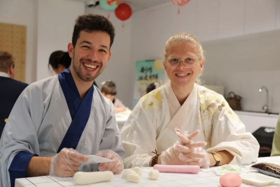 换上汉服,摇身一变就是“唐朝少女”“宋代公子”;做一把珍珠扇、品一盏清茶、缝一个玉桂香囊……每个摊位前都排起长队,氛围感直接拉满!来自博泽汽车技术企业管理 (中国)有限公司的项目总监茗芯说:“就像走进了一个活的博物馆,可以学到很多东西!”