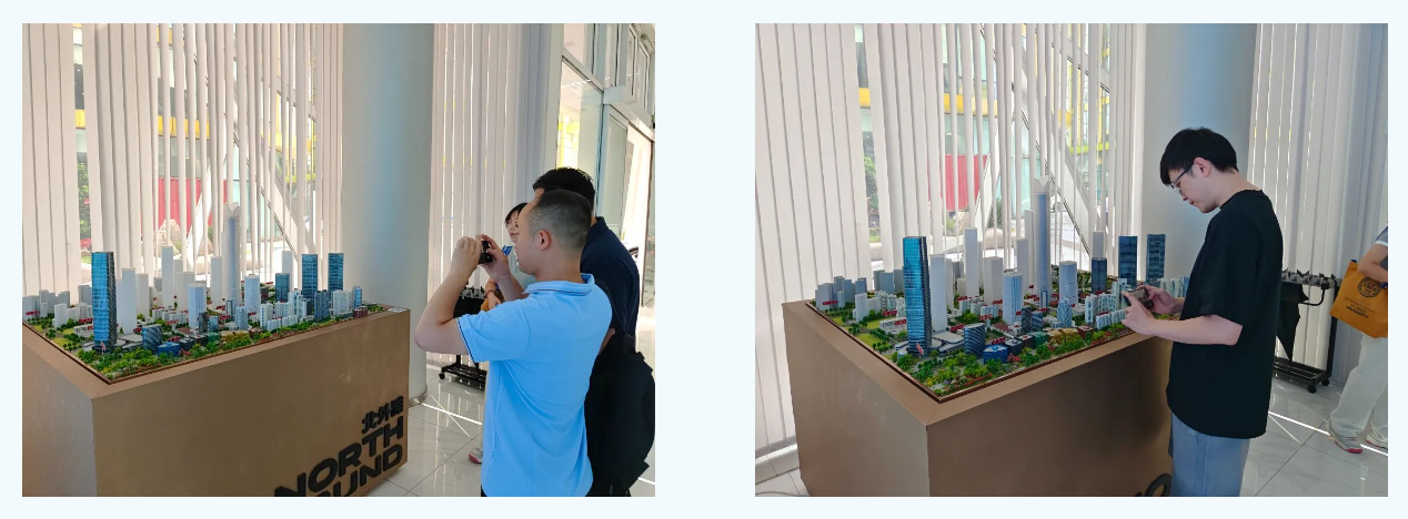 “这里是未来全新的浦西第一高楼,高度将达480米。”在北外滩数字展示馆,讲解员介绍了虹口北外滩的发展情况。通过智慧化的手段,利用沙盘模型和沉浸式影片,让大家了解北外滩区域形态布局和规划建设情况,直观感受“上海北外滩、都市新标杆”的国际化发展愿景。同学们不时举起手机,记录下北外滩的发展成就和美好未来。