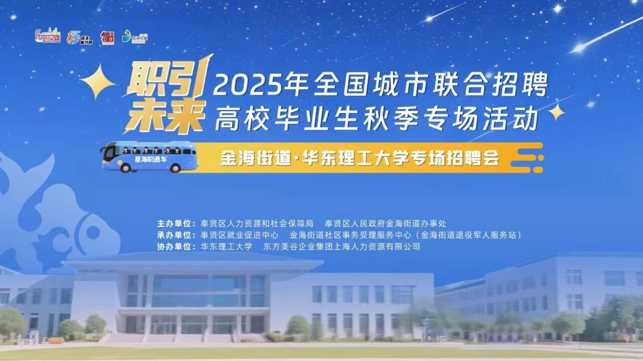 为扎实推进高校毕业生就业工作,9月23日下午,2025年全国城市联合招聘高校毕业生秋季专场活动“金海街道·华东理工大学专场招聘会”在华东理工大学成功举办。