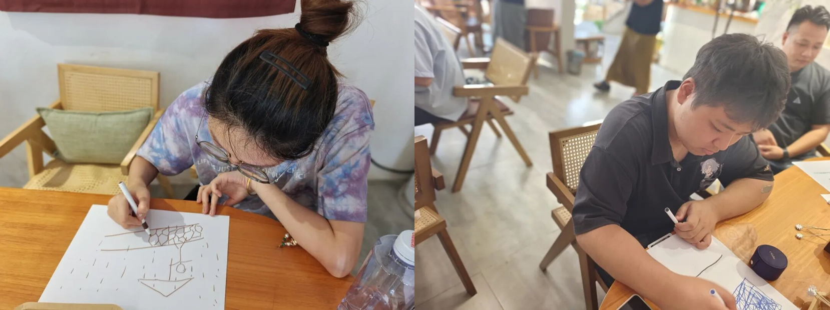 “雨中人”绘画环节,在构图、笔触、细节处理等方面无形中投射出青年当前的情绪及压力状态。通过绘画作品直接呈现了压力等级,并体现了自身面对压力时的状态与内心的应对力量。