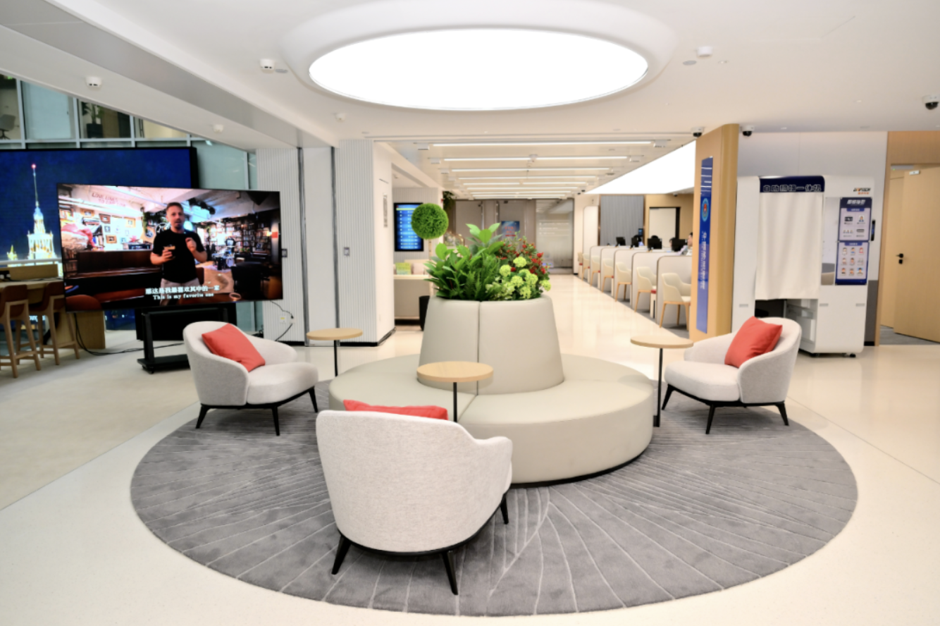 一楼设置24小时自助服务区,涵盖离境退税、外币兑换、通讯服务、24小时港澳智能签注等自助服务机。