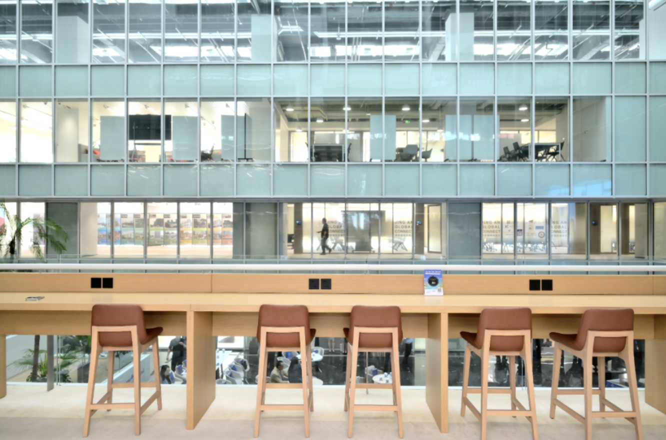在空间布局上,国际会客厅以舒适融入、功能多元、共享服务为核心理念,在设计上尽可能弱化行政元素,强化“会客厅”休闲、洽谈、交流的氛围,展现国际化规格、科学化布局、时代化功能、人性化设计、本土化特色。