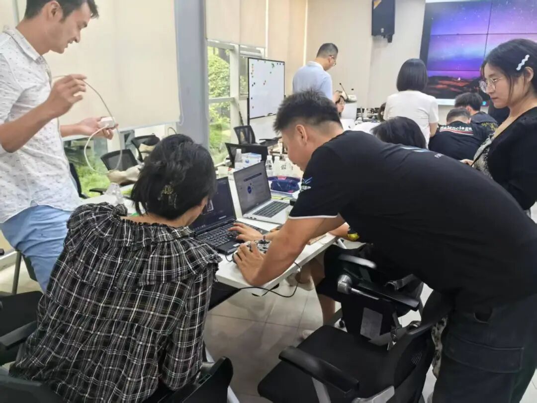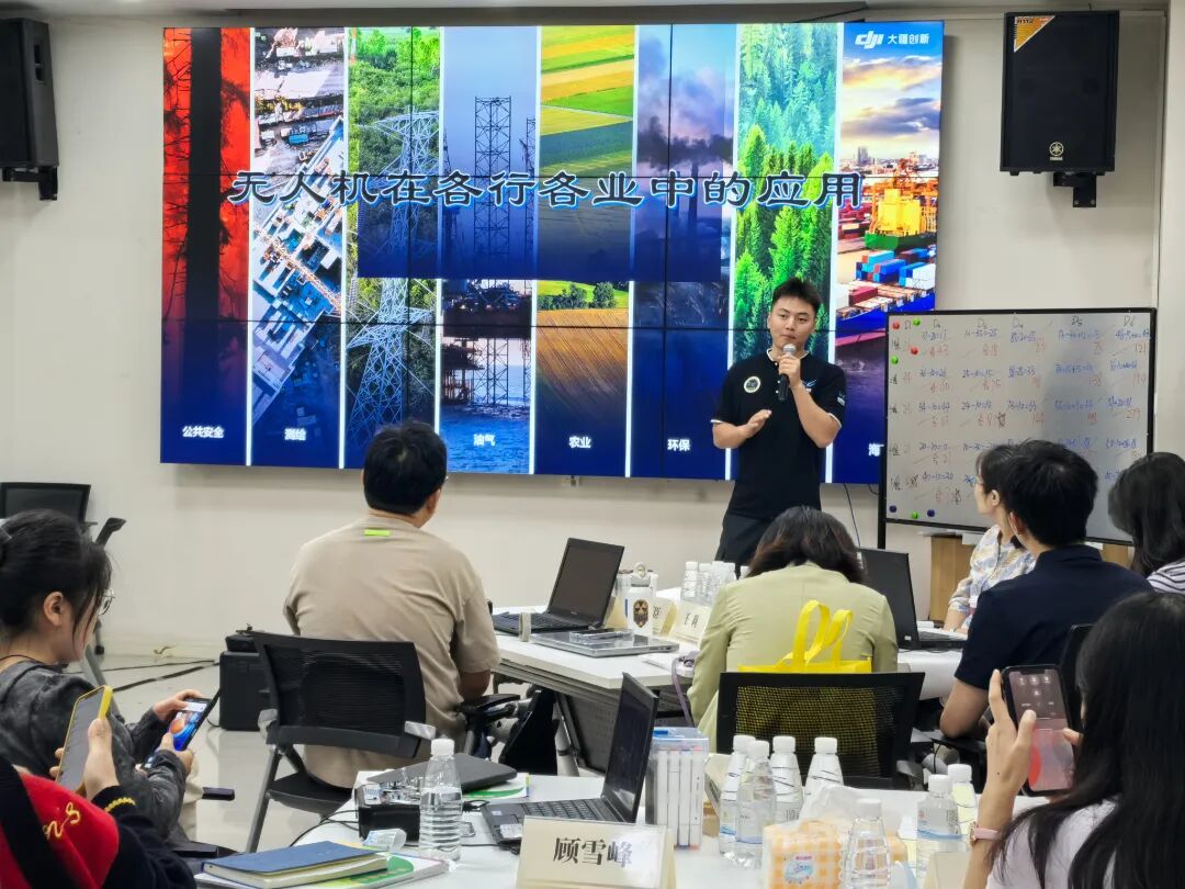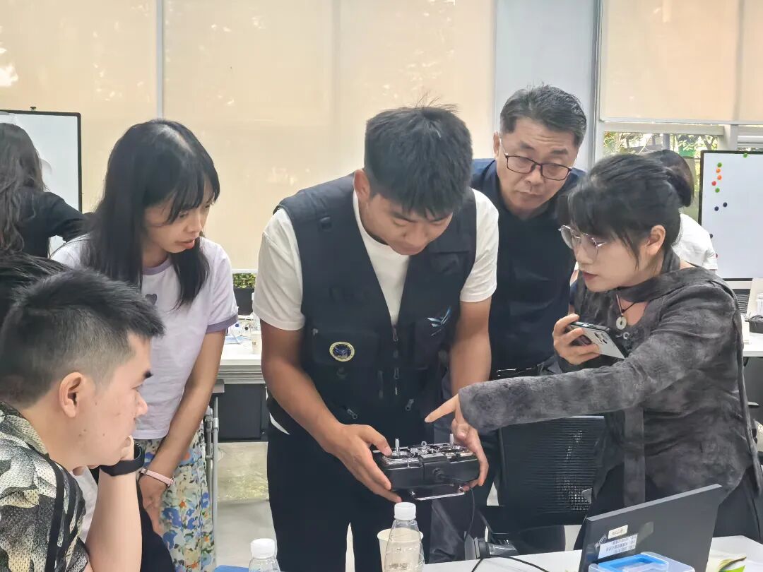 本次无人机航拍体验课程内容设计丰富且遵循循序渐进的学习规律,让学员能高效掌握无人机相关知识与技能。活动伊始,一段酷炫的航拍视频迅速点燃现场氛围,随后专业讲师围绕无人机概述、飞行安全要点、基础飞行动作规范及航拍摄影理论展开系统讲解,为学员筑牢理论基础。实践操作环节中,学员以5-6人为一组进行电脑飞行模拟训练,在虚拟环境中熟悉飞行原理、反复练习操控技巧,为后续真机操作做好充分准备。最后大家以小组为单位,轮流操控大疆航拍机进行实操飞行。在专业讲师的带领下,大家操练推进、渐远、 镜头环绕等专业运镜手法,从角度控制到速度控制,每个细节都反复打磨。