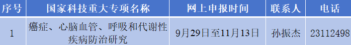 通知|关于组织申报癌症、心脑血管、呼吸和代谢性疾病防治研究国家科技重大专项2026年度项目的通知