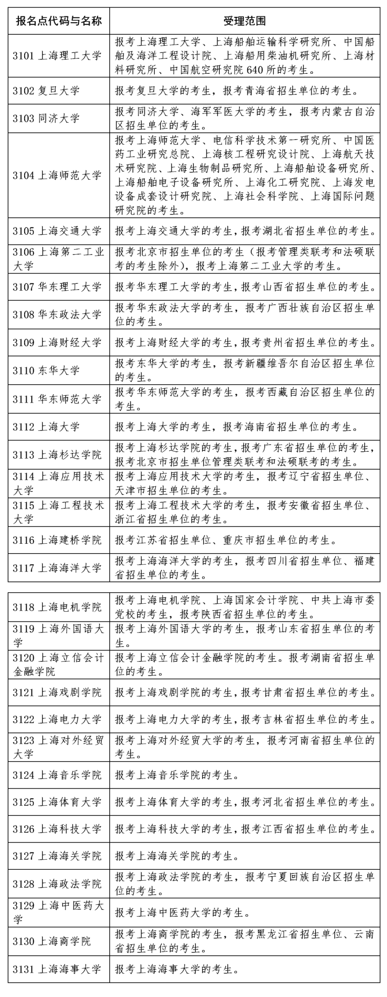 四、上海市2026年全国硕士研究生招生考试考生网上确认报名点安排表