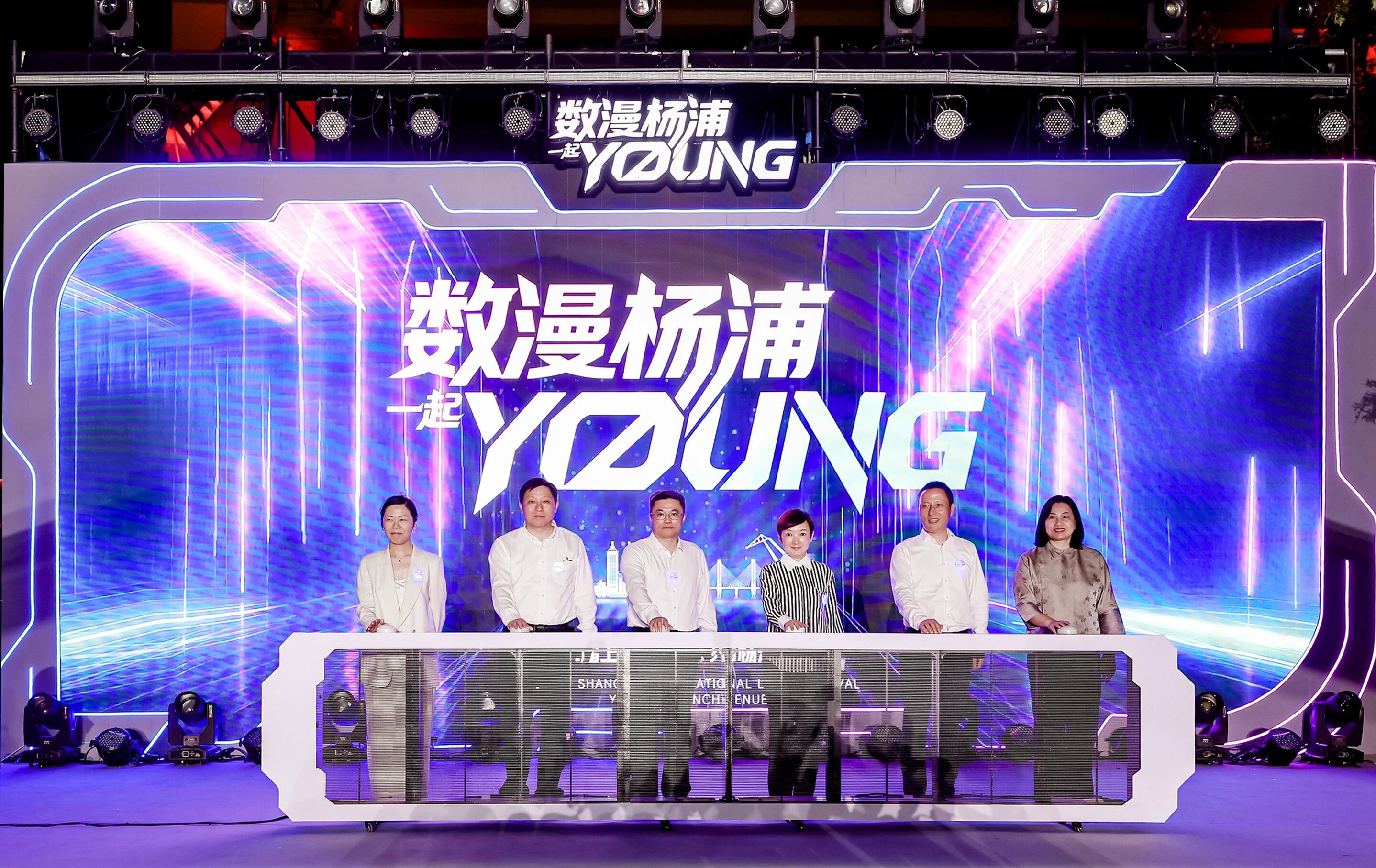 现场,薛侃、周海鹰、熊健、徐建华与企业代表共同启动点灯装置,象征“YOUNG”精神的彩带在夜空中喷射绽放,正式宣告本届上海国际光影节杨浦分会场盛大启幕。