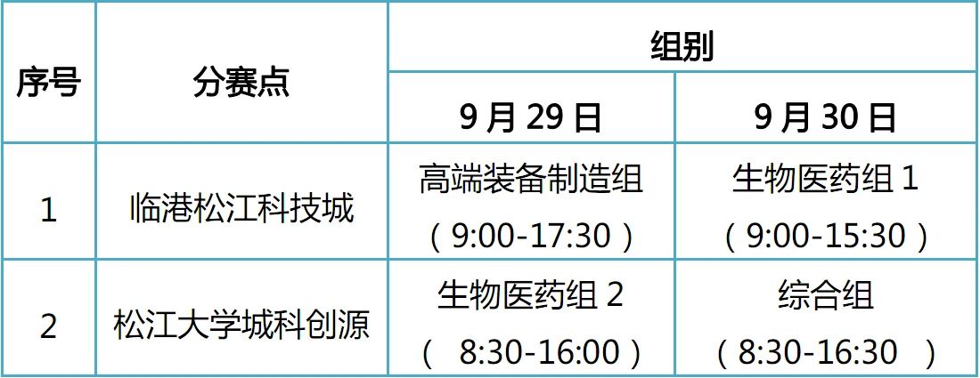 2.松江大学城科创源分赛点(地址:文翔路2200号上海视觉艺术学院德稻大楼一楼大厅),具体赛事安排详见下表: