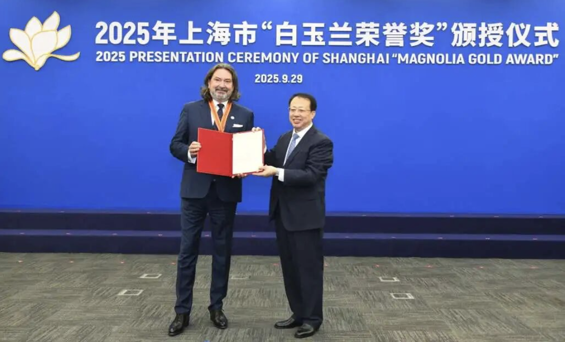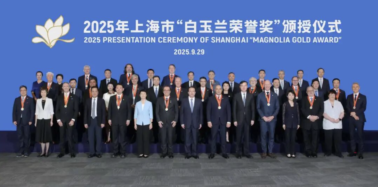 9月29日,2025年“上海市荣誉市民”“白玉兰荣誉奖”颁授仪式在沪举行,上海市市长龚正为获奖者颁授奖章、证书。此次荣获“白玉兰荣誉奖”的28位外籍人士来自美国、英国、法国、德国、澳大利亚、荷兰、新加坡、日本等国家,在经贸、金融、科技、航运、医疗、教育、文化等领域为上海经济社会发展作出了突出贡献。来自静安区企业的3位外籍人士获得此殊荣,他们分别是泰佩思琦亚太区总裁杨葆焱(法国籍),思爱普(中国)有限公司全球高级副总裁、全球研发网络总裁柯曼(德国籍),辉瑞全球高级副总裁辉瑞中国区总裁彭振科(法国籍)。
