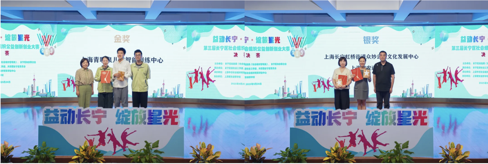 经过专家评审团的严格评审,最终,上海青聪泉儿童智能训练中心凭借其创新性和社会价值荣获大赛金奖;上海长宁虹桥街道众妙公益文化发展中心、上海建安进修学校2支队伍获得银奖;上海长宁圃安青少年安全防御教育公益中心、上海市长宁区星辰合唱团、上海长宁区明心精神卫生社工站3支队伍获得铜奖;上海市长宁区人民调解协会等9支队伍分别获得社区治理达人奖、青年英才奖和巾帼精英奖。此外,来自上海喜事助老服务中心等9支队伍和一名大学生志愿者张骞获得公益探索奖。