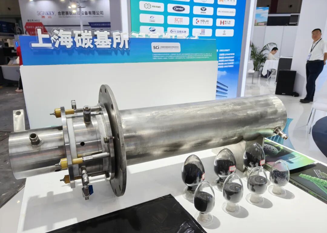 不远处,上海碳基纳米研究所的展品也吸引了不少目光。上海国创碳基纳米材料研究所孵化企业总经理介绍,研究所由宝山区、长三角国家技术创新中心及专家团队共建,聚焦碳基纳米材料的研发与转化。此次他们不仅带来了高端碳微球、石墨烯导热膜等产品,还有利用等离子的技术裂解制备的高端导电碳纳米材料。“我们不仅做研发,也做孵化。”他表示,目前已通过工博会接触到一批意向客户,后续将逐一深入对接。