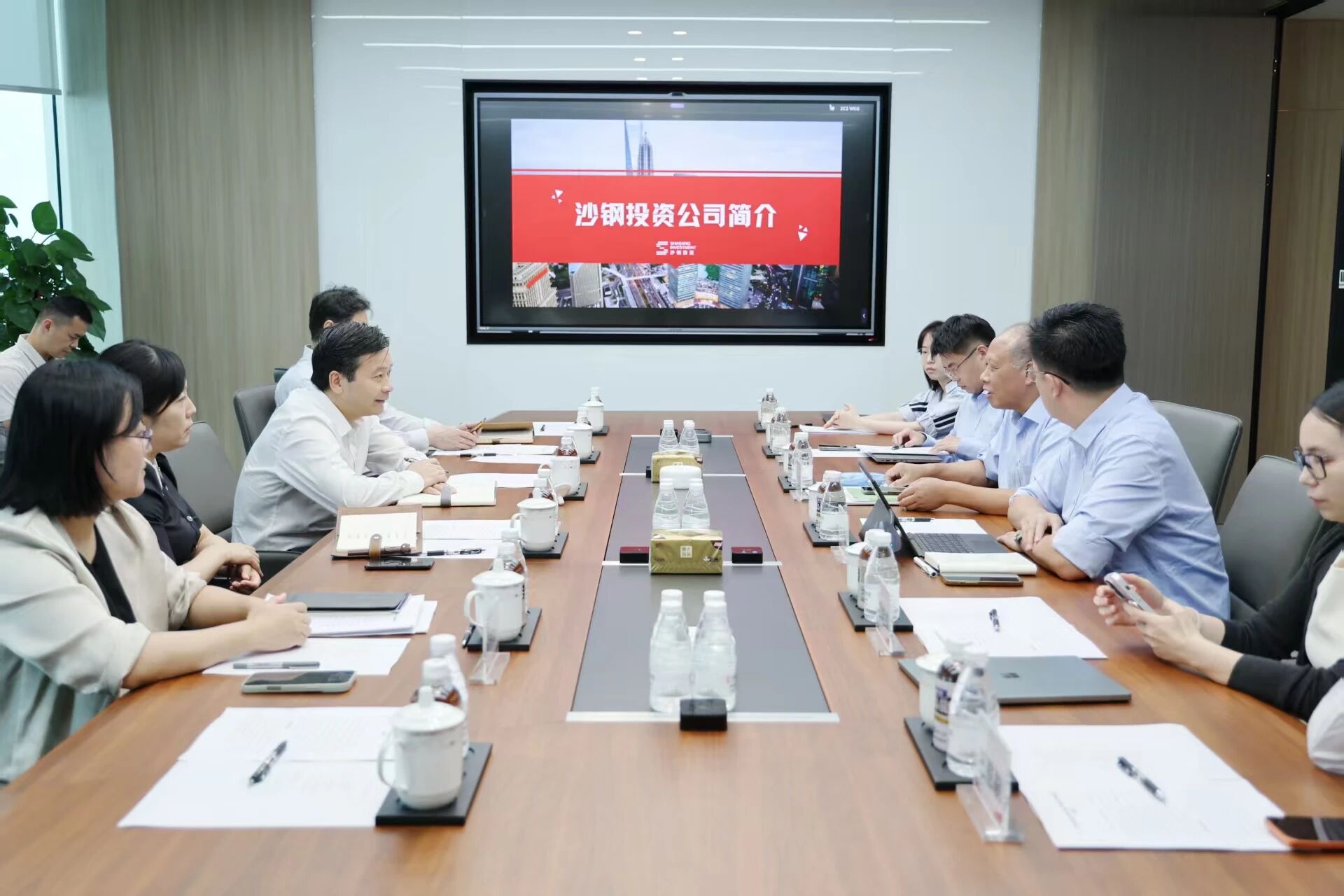 上海锦沙股权投资基金管理有限公司(“锦沙资本”)是江苏沙钢集团投资控股有限公司(“沙钢投资”)旗下一级市场投资平台。吴金城与公司管理团队座谈交流,详细了解其发展历程、业务开展等情况,并就企业谋划开展未来通信产业方向作了沟通。