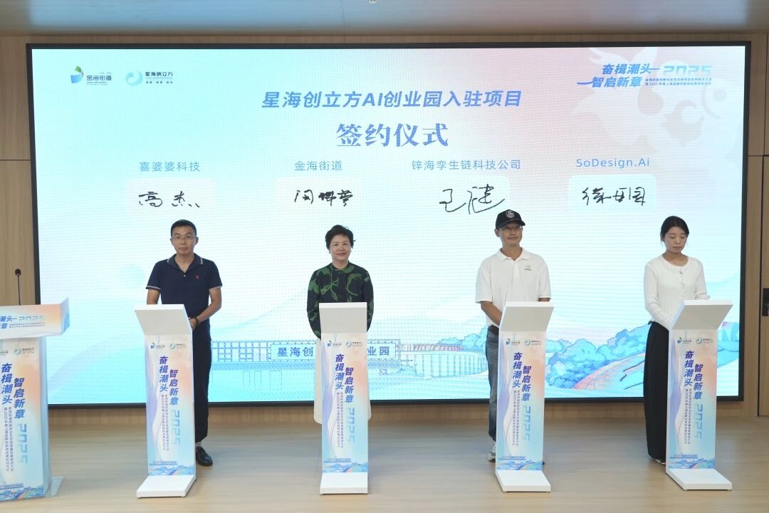 活动现场,SoDesign.Ai、喜婆婆科技、锌海孪生链科技三个优质项目与金海街道签约,正式扎根星海创立方,为创新发展注入了新鲜血液。