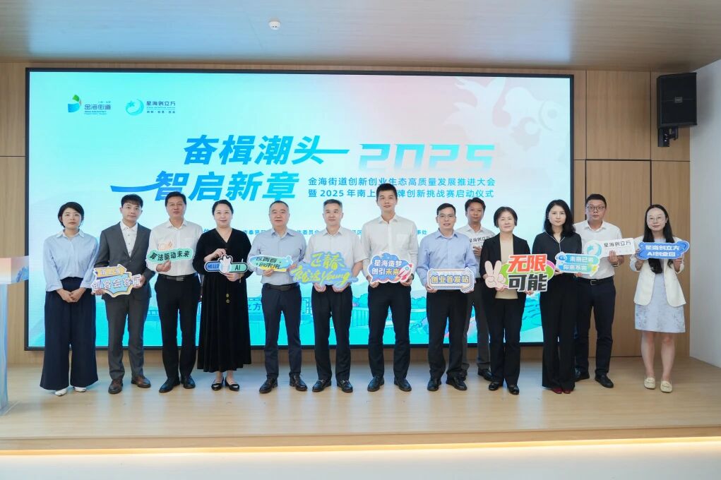 金秋十月,创新潮涌。2025年10月16日,“奋楫潮头 智启新章”金海街道创新创业生态高质量发展推进大会暨2025年南上海品牌创新挑战赛启动仪式在充满活力的星海创立方AI创业园成功举办。活动汇聚了奉贤区相关委办局、浙江大学上海校友会、高校创业指导站、创业专家、生态伙伴及企业家代表等,共同见证金海街道创新生态的迭代升级,展望南上海科创发展的崭新未来。