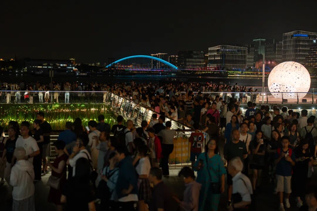 不管是今年还是去年,船坞光影剧场那里永远是人流量最多的打卡点,今年的《数字潮涌》设置了每晚三场的船坞真人现代舞表演,吸引了成千上万的观众趋之若鹜。