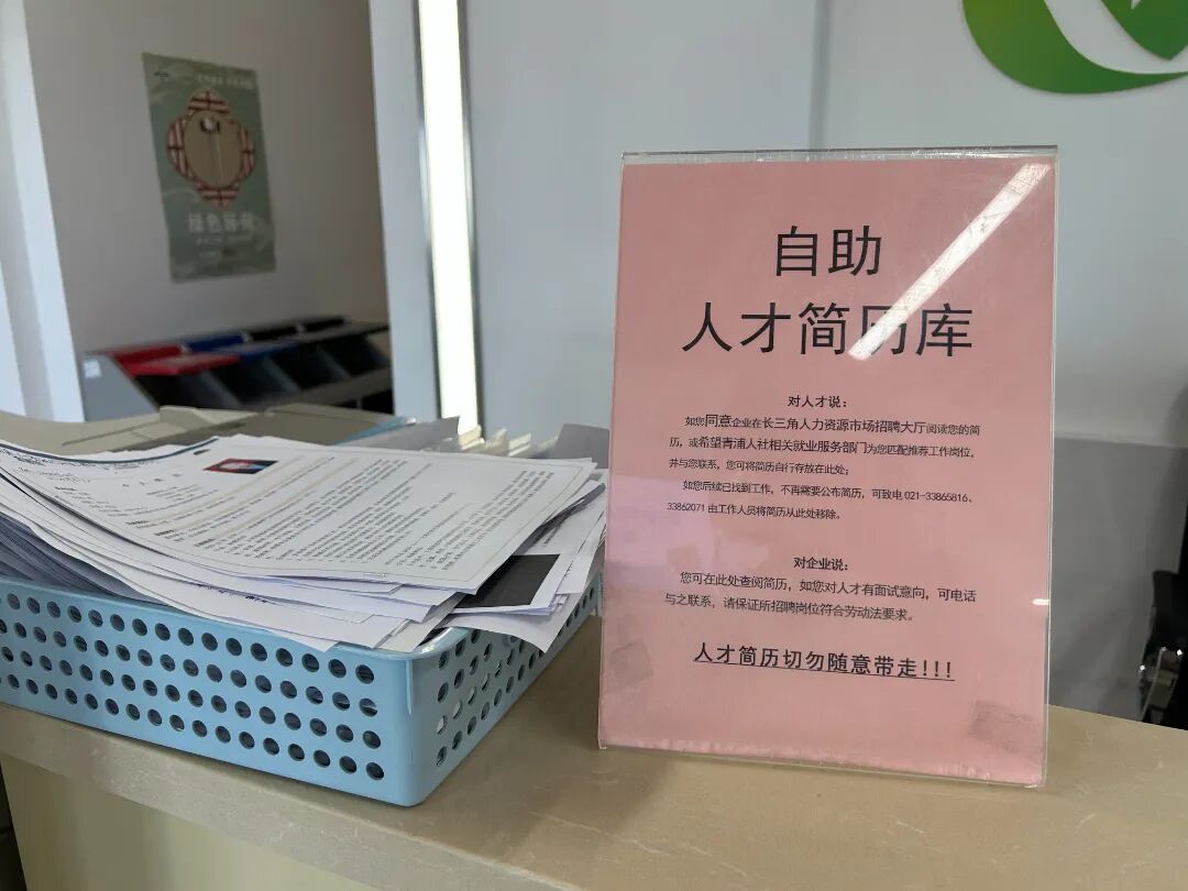 招聘会现场气氛热烈,求职者们手持简历,穿梭于各企业展位之间,积极与企业人事负责人交流岗位信息、了解企业需求。此外,记者还注意到现场特别设置了自助服务区与人才简历库,自助服务区为未携带简历的求职者提供现场打印及表格手写服务,人才简历库则由求职者自由放置简历,由青浦人社相关就业服务部门持续跟进,为投递简历的求职者精准匹配、推荐适配岗位。