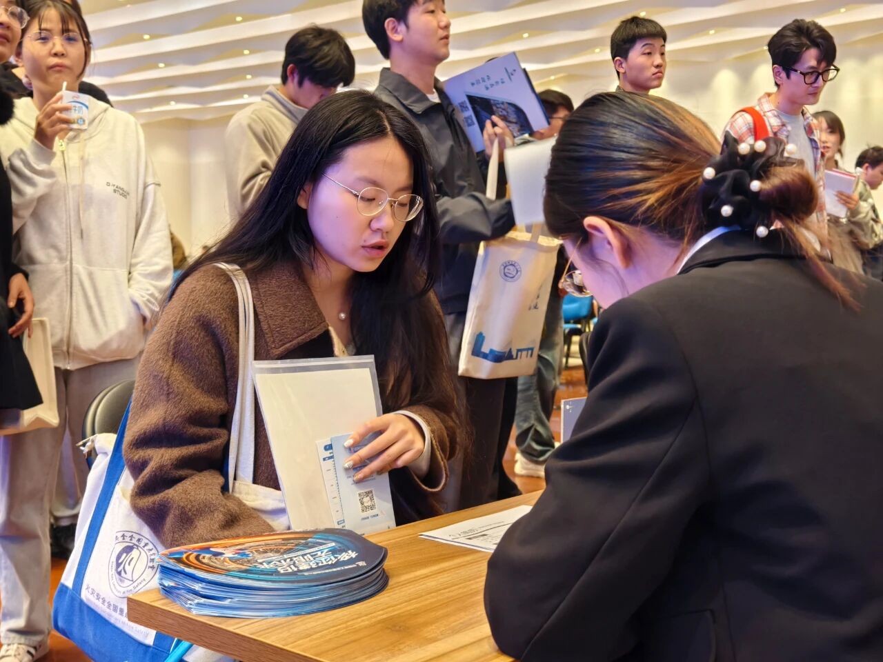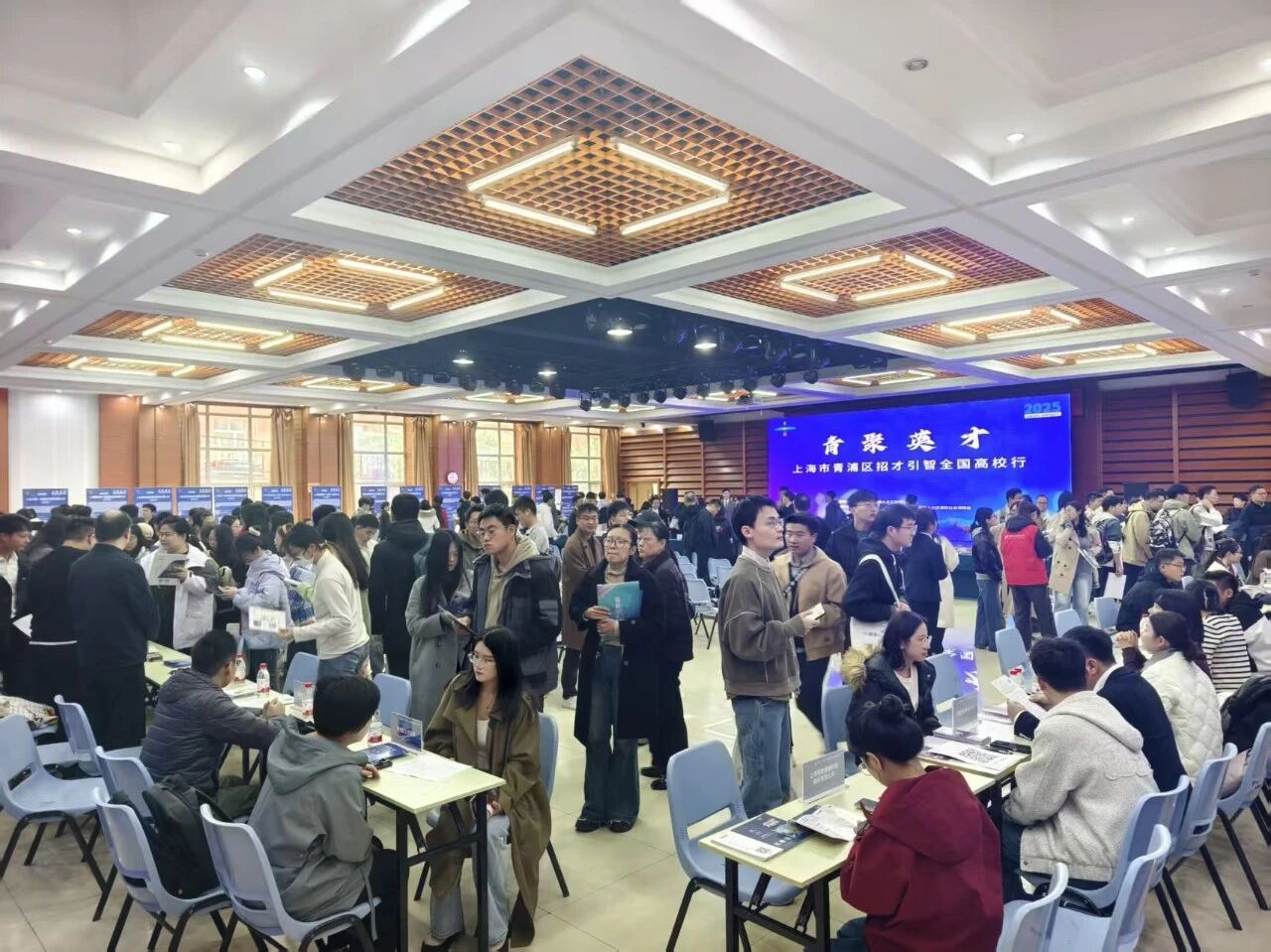活动现场人头攒动,青浦区的机关、企事业单位和在青央企、国企、民企及外资企业,现场推介近2500个岗位,向优秀的毕业生、青年人才发出来自青浦的诚挚邀请。听闻家乡来学校举办招聘会,青浦籍的哈尔滨工业大学学子吴嘉欣充满期待,她提前来到现场,认真咨询了有兴趣的岗位。“哈尔滨是一座有魅力的城市,哈工大的学习氛围浓厚,我会在课堂、实验室、社团中认真汲取知识、锻炼技能,盼望学成后回到青浦,回馈青浦的培养,为家乡的发展注入新活力。”在中国科学技术大学,通过现场推介,青年学子左晓文对青浦战略叠加的发展机遇,宜居宜业的生活环境和爱才惜才的人才政策充满向往。“青浦充满发展机遇,特别对青年人才的待遇政策比较好,这次来招聘的企业,有央企国企,也有上市公司和互联网知名企业,我选择中核建投递了简历,希望能发挥专业所学,有更好的发展。”
