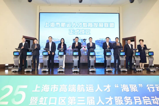 现场还展示了“上海市高端航运人才‘海聚’行动”,发布虹口区“菁英100”青年人才培养计划,推介“AI小虹”智能化人才服务。