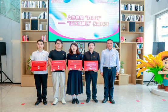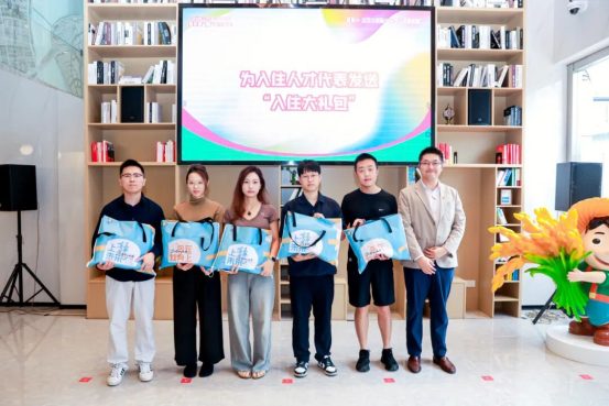 仪式现场,对人才的细致关怀与党建服务巧妙融合,每一处细节都尽显温暖。区领导为入住人才代表送上精心准备的“入住大礼包”,内含静安区人才政策包、公寓专属文创产品及实用生活物资,助力人才快速熟悉区域环境、融入静安发展。针对党员人才,现场还特别准备了“红色加油包”,包含党员联系卡、政治学习资料,帮助党员住户快速找到组织,凝聚集体力量。