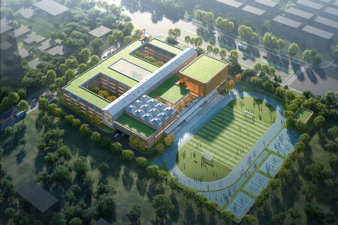 上海理工大学附属奉贤学校项目位于奉贤区金汇镇,北侧为大叶公路,西侧为泰叶路。总用地面积 29895平方米(约44.9亩),总建筑面积约为 31794平方米。拟建54班九年一贯制学校,其中小学30个班,初中24个班。