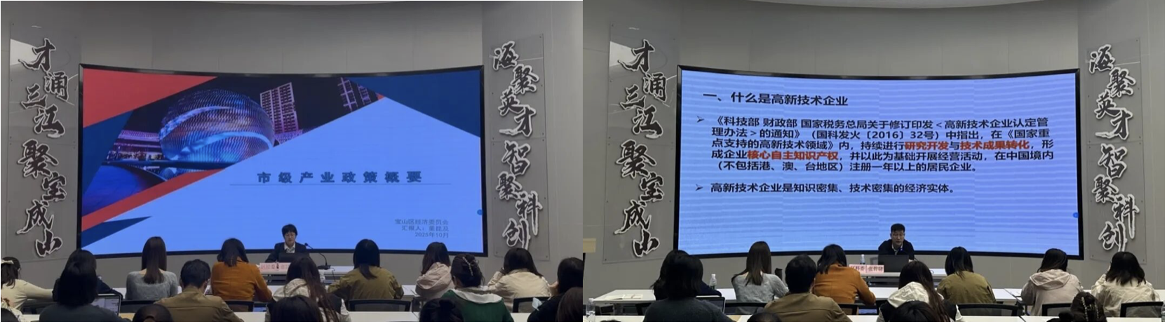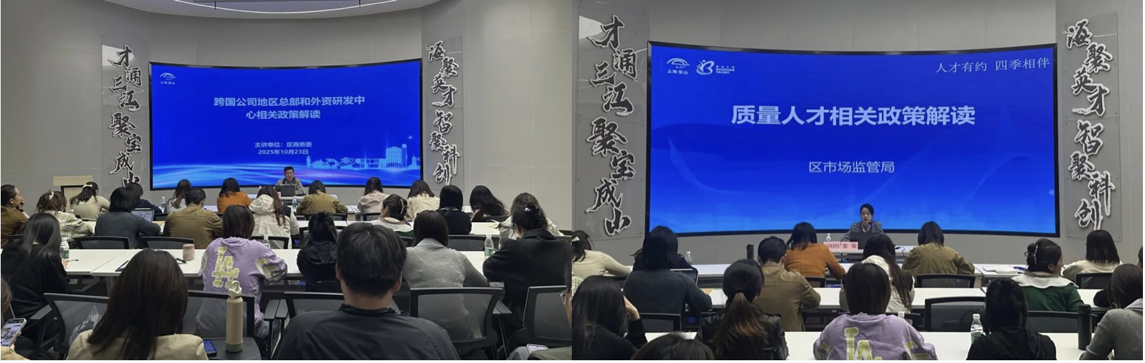 为深入贯彻人才强区战略,持续提升区域人才服务专业化水平,10月23日,区人才工作局在宝山科创人才港举办了宝山区人才服务专员全岗通(企业发展专场)培训。本次培训聚焦企业关注的产业政策、外资扶持政策、科技政策以及质量人才相关政策,特邀区经委、区商务委、区科委以及区市场监管局相关负责同志授课,通过政策解读、实务精讲与案例剖析,全面强化人才服务专员服务企业发展的专业能力。来自全区各街镇(园区)、区属国有平台公司及人才驿站的近50名人才服务专员参训。