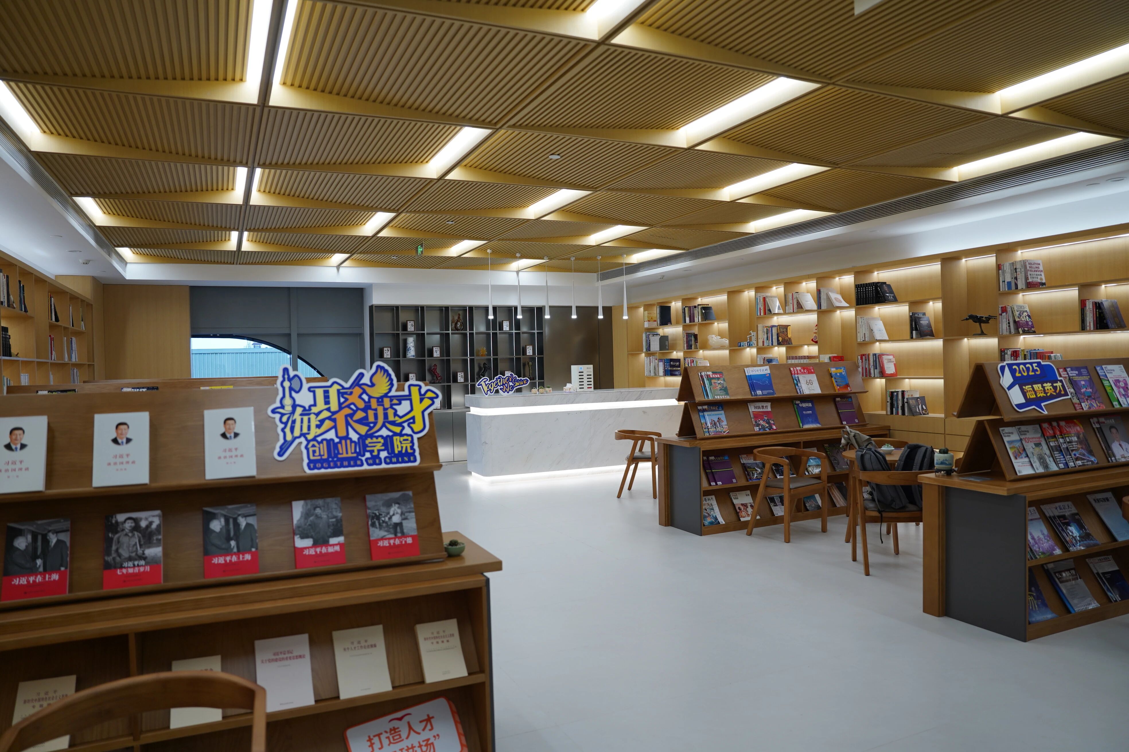 海聚英才创业学院运营负责人黄煜介绍:“三层空间以学院为主体,提供梯度课程与孵化,打造‘课、营、赛、社、孵、投、服’发展模式,形成‘培育—孵化—投资’闭环。加之零成本创业空间与‘海聚英才’创投基金,共同构筑起赋能人才创新创业的良性生态圈。”