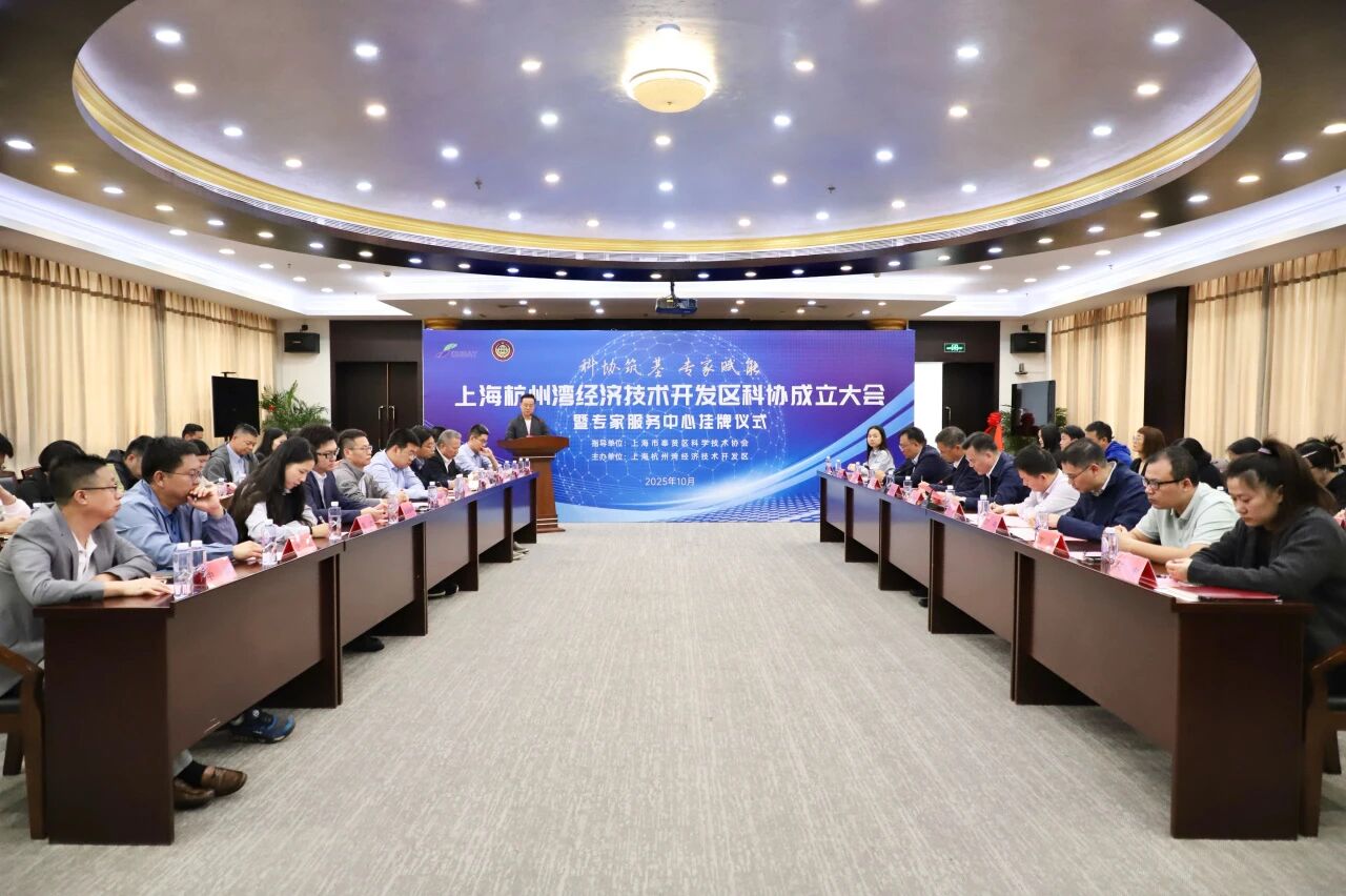 10月31日下午,上海杭州湾经济技术开发区迎来科创领域重要里程碑——开发区科学技术协会(以下简称“杭州湾科协”)成立大会暨专家服务中心挂牌仪式成功举行。奉贤区科委(科协)党组书记卫丙戊,上海杭州湾经济技术开发区党委书记、董事长黄联锋,上海杭州湾经济技术开发区党委副书记、总经理俞文华,奉贤区科委党组成员、区科协副主席李杰,上海应用技术大学智能技术学部电气与电子工程学院党支部副书记、副院长王震,上海杭州湾经济技术开发区党委委员、纪委书记丁毅以及开发区内33家企业协会会员科技工作者,共同见证了这一推动园区科技创新能级提升的重要时刻。活动由上海杭州湾经济技术开发区副总经理翁俊主持。