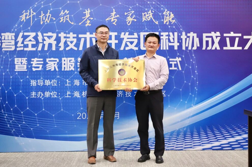 李杰为“上海杭州湾经济技术开发区科学技术协会”授牌。