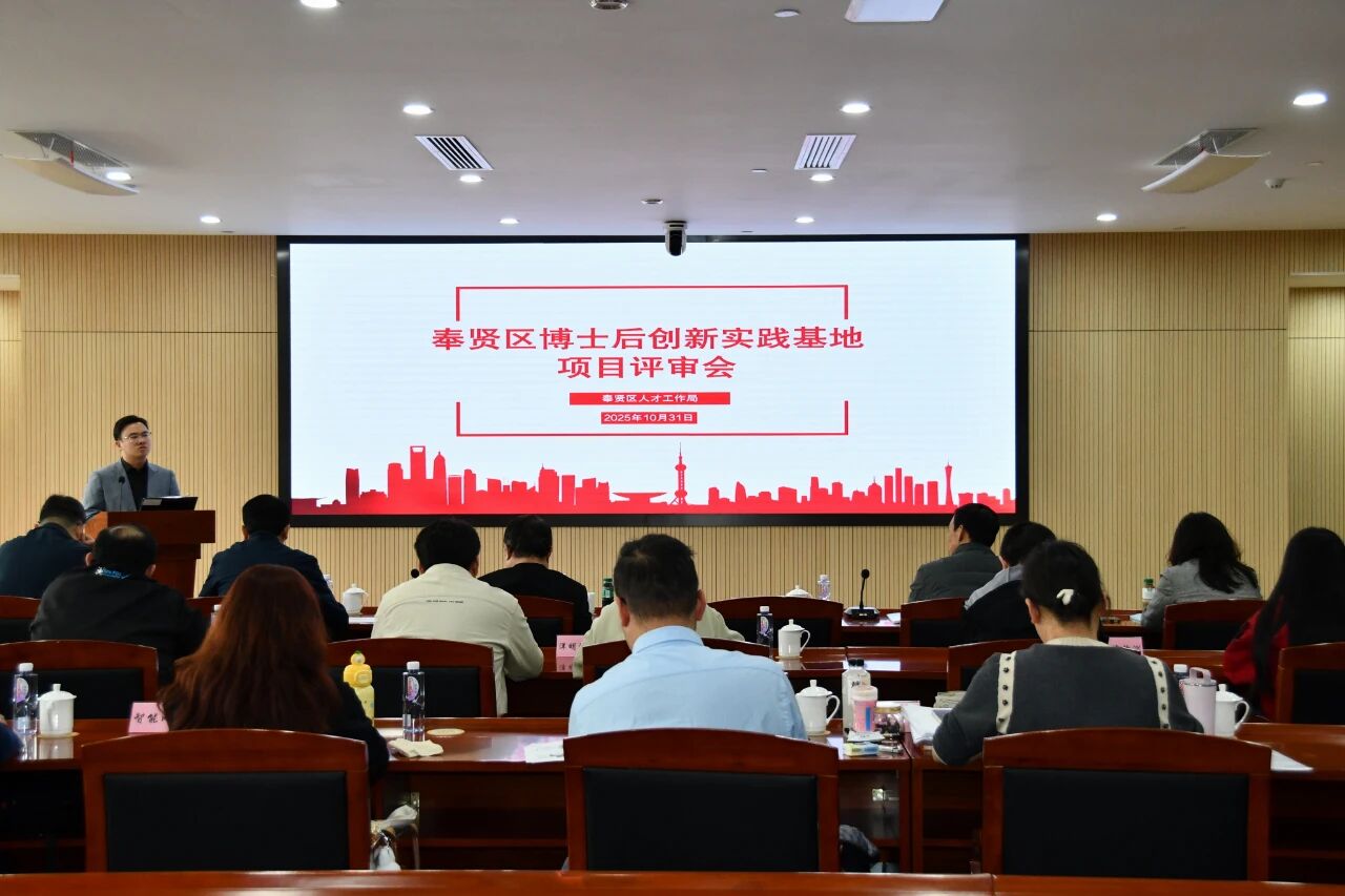 为加大本区高层次青年科技人才引育力度,促进博士后科研项目与区域产业发展对接,不断提高区内重点产业领域企业的核心竞争力,助力加快建设南上海人才高地,10月31日下午,区人才工作局举行了2025年奉贤区博士后创新实践基地项目评审会,来自相关行业领域、高校博管办、区相关产业部门的9名专家对企业项目路演进行集中评审,区委组织部副部长、区人才工作局局长甘德富出席会议并讲话,区人才工作局副局长韩韬主持评审会。