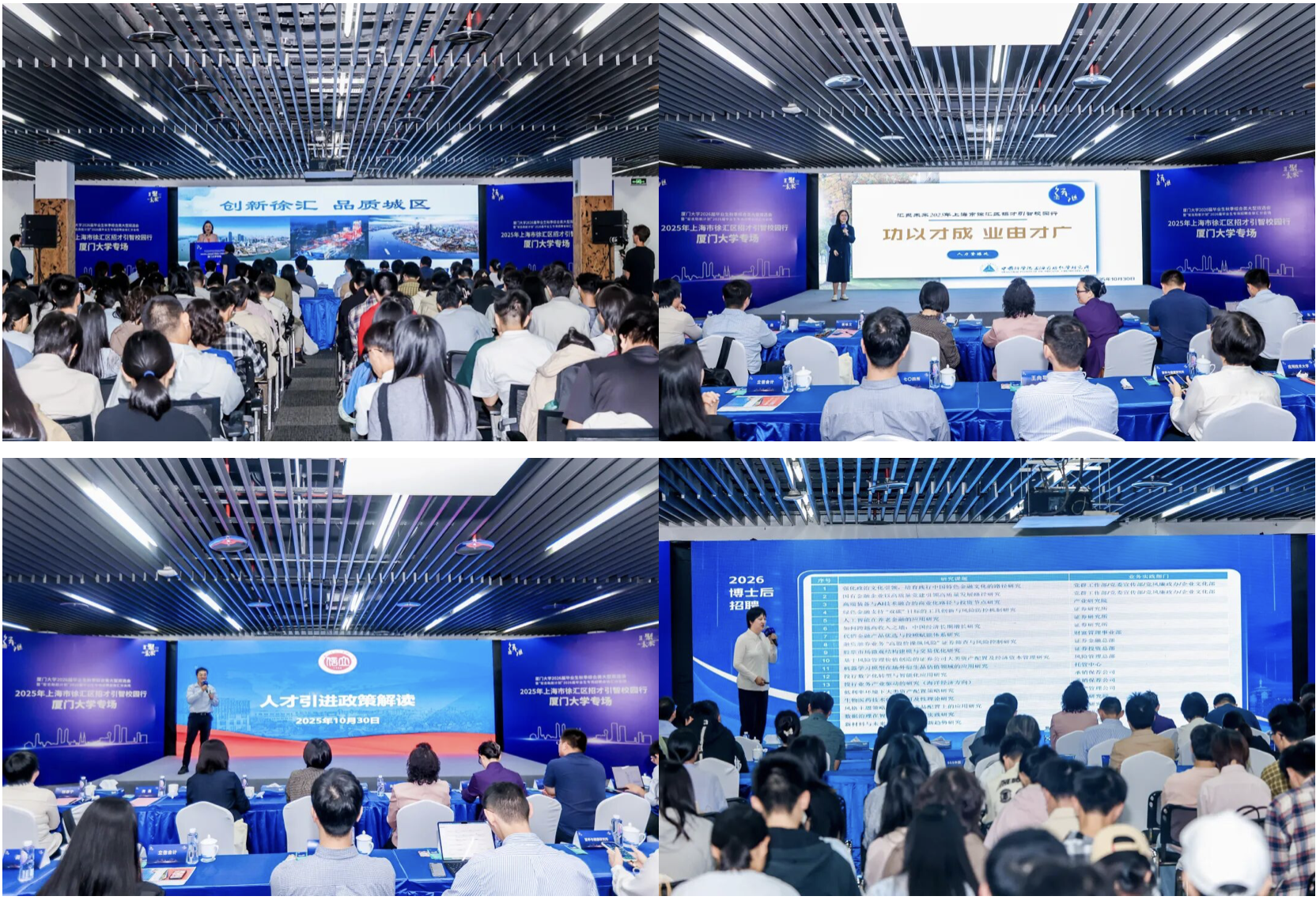 2025年“汇聚未来”徐汇区招才引智校园行厦门大学专场日前举行。区委组织部(区人才局)采用“政企研组团”模式,携20余家区域重点企事业单位、近700个产学研优质职位,共同走进校园,深化创新人才引进培育。