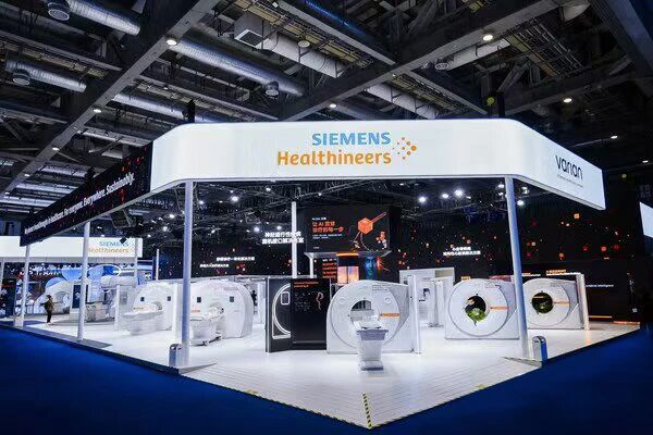 让我们来到医疗器械及保健展区1.1号馆面积最大的展位——西门子医疗展位。西门子医疗此次展览面积创历年参展进博之最,达到1000平方米。多款“中国首发•全球首款”展品及解决方案在这里亮相。