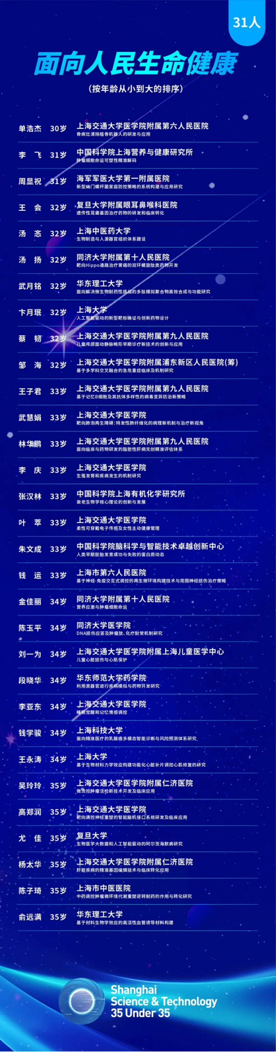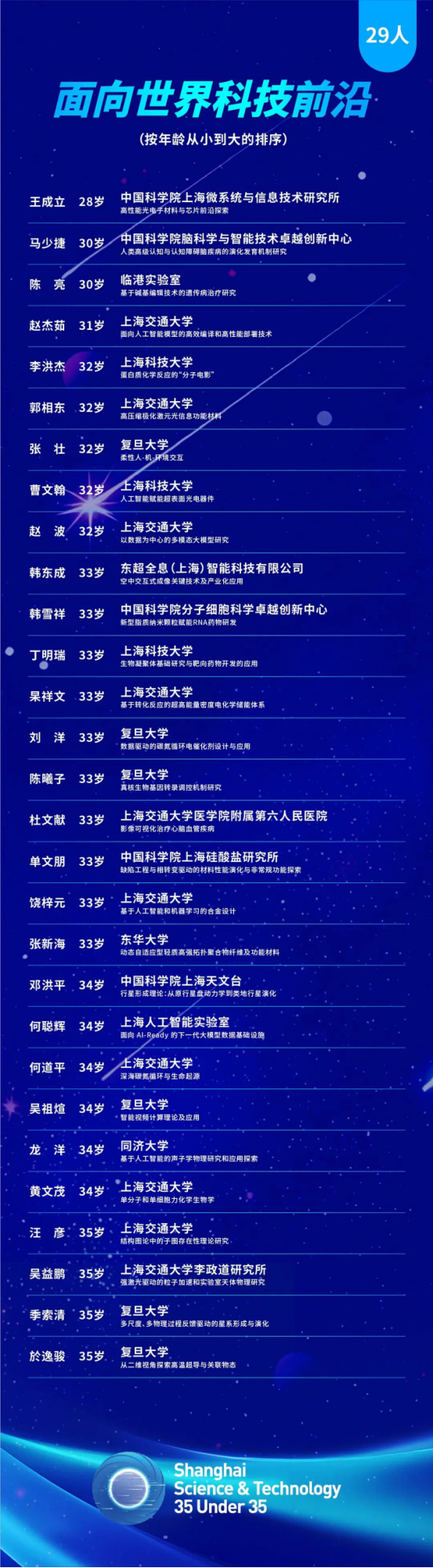 2025年上海科技青年35人引领计划100名候选人名单公示!有你熟悉的吗?