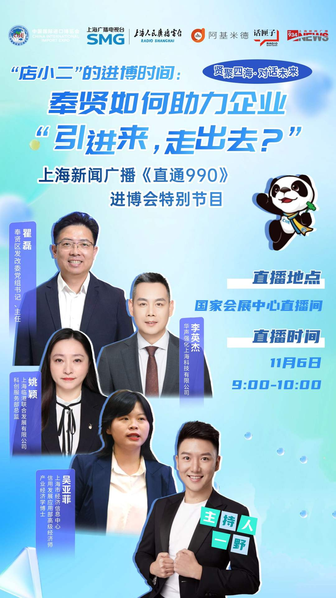 2025年11月6日,第八届中国国际进口博览会火热举办之际,上海新闻广播《直通990》“贤聚四海・对话未来” 特别节目第五期将直播间搬进国家会展中心。
