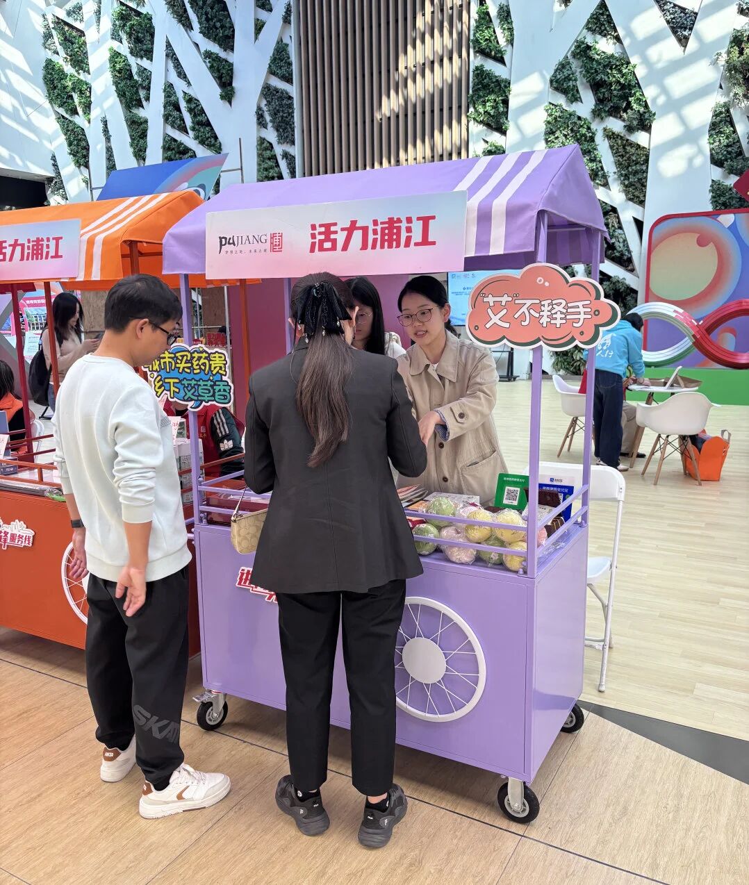 当天,临陈街区党支部聚焦 “科技赋能生活” 主题,以3辆“活力浦江”展示花车为移动宣介窗口,将营商环境推介与企业特色展示有机结合,集中呈现三家优质企业风采。过往市民被展示产品吸引,驻足围观咨询,不时拿起展样仔细查看,向企业工作人员询问其原理与功效。