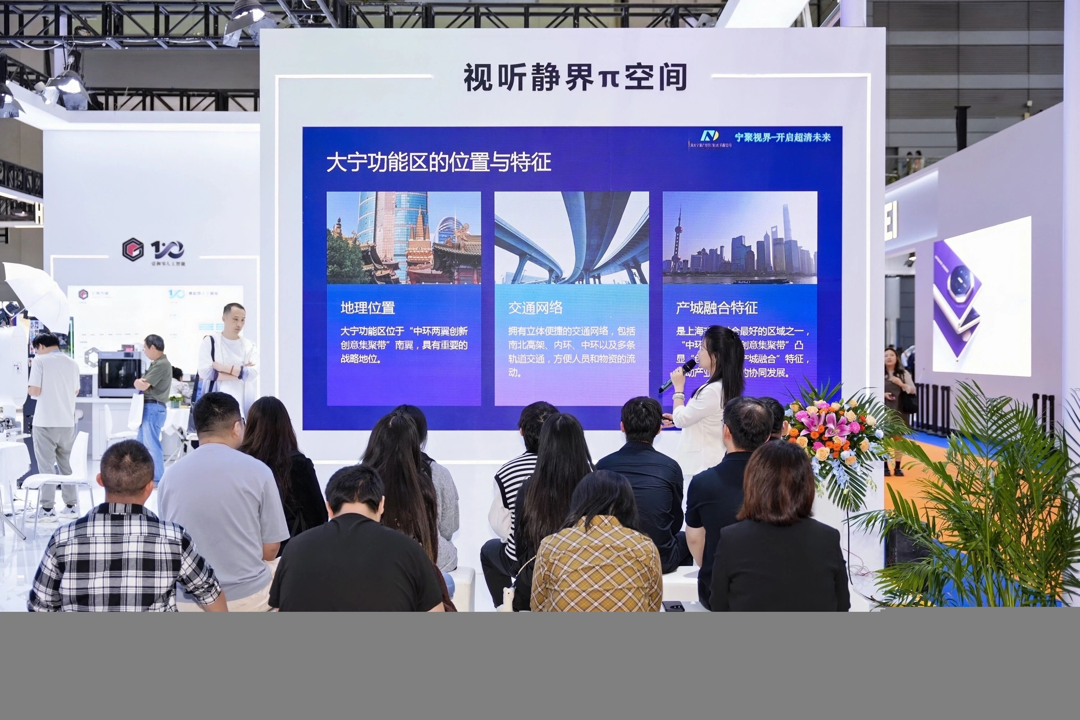 在本次大会中,静安大宁功能区视听静界π空间携四家超高清视听产业链核心企业参展,并成功举办“宁聚视界,开启超清未来”主题推介会。