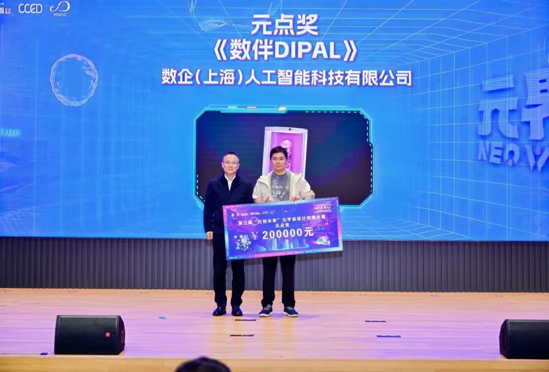 颁奖仪式上,赛事最高荣誉“元点奖”获奖者数企(上海)人工智能科技有限公司代表登台展示作品《数伴》,生动诠释了大赛“元创未来、智启新境”的理念——通过推动人工智能技术在元宇宙创意设计中的应用,助力漕河泾元宇宙街区建设,努力打造可落地、可实施的应用示范标杆,聚集元宇宙人才资源,构建街区创新产业生态。