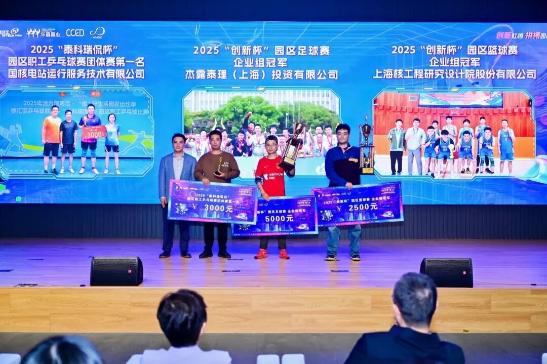 经过长达数月的激烈比拼,各项赛事的冠军最终尘埃落定。在备受瞩目的团体项目中,杰露泰理(上海)投资有限公司拿下2025年“创新杯”园区足球赛企业组冠军,上海核工程研究设计院股份有限公司斩获“创新杯”园区篮球赛企业组冠军,国核电站运行服务技术有限公司赢得“泰科瑞侃杯”园区职工乒乓赛企业团队第一名。