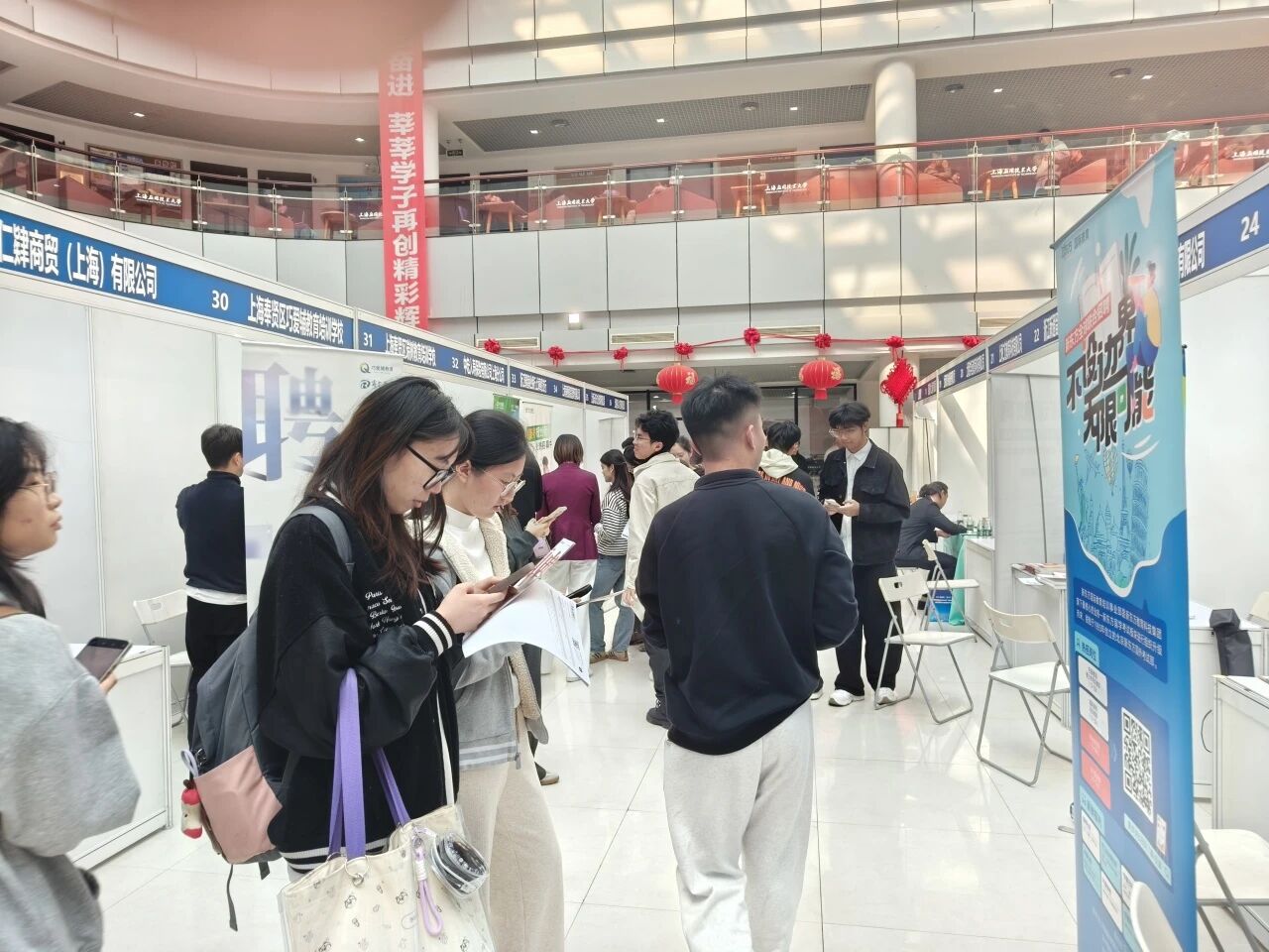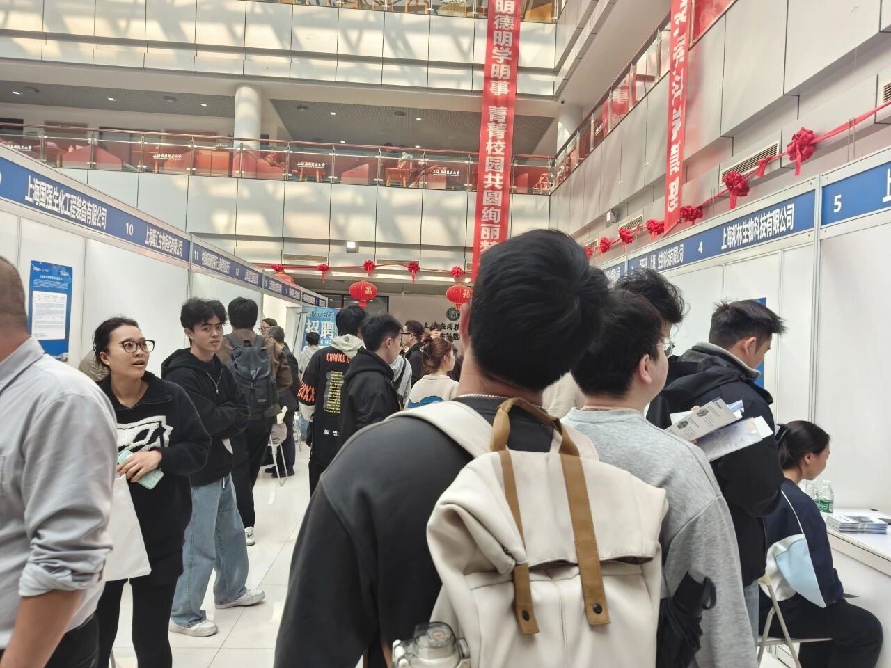 为全面落实党中央、国务院关于促进高校毕业生就业创业的决策部署,切实推进高校毕业生高质量充分就业,11月14日下午,由奉贤区人力资源和社会保障局、金海街道办事处联合主办,奉贤区就业促进中心、金海街道社区事务受理服务中心(退役军人服务站)承办的“职引未来——金海街道上海应用技术大学专场招聘会”在上海应用技术大学奉贤校区学生活动中心成功举行。