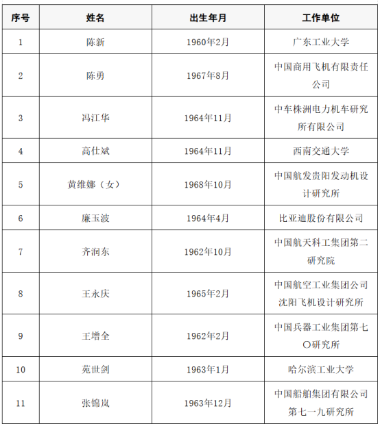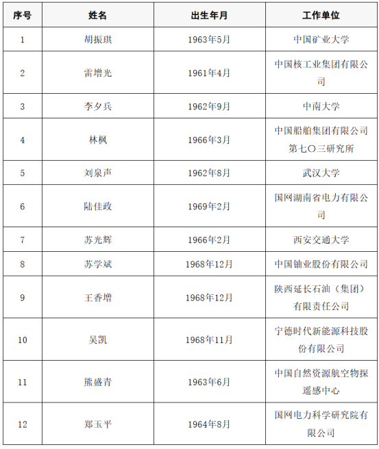 2025年当选中国工程院院士名单