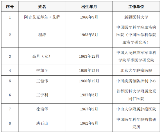 医药卫生学部(8人)