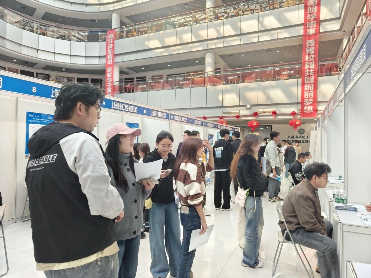 为全面落实党中央、国务院关于促进高校毕业生就业创业的决策部署,切实推进高校毕业生高质量充分就业,11月14日下午,由奉贤区人力资源和社会保障局、金海街道办事处联合主办,奉贤区就业促进中心、金海街道社区事务受理服务中心(退役军人服务站)承办的“职引未来——金海街道上海应用技术大学专场招聘会”在上海应用技术大学奉贤校区学生活动中心成功举行。