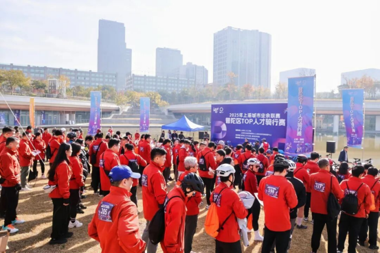 大会最后,六位来自不同领域的人才代表共同启动普陀区TOP人才骑行赛。来自中国新加坡商会、新加坡管理大学、上合组织青年创业国际孵化器等普陀海外引才合作单位代表,上海青年科技人才协会、普陀区海内外高层次人才、重点产业人才代表以及普陀区人才工作相关委办局、街镇人才管家等150余人参加。他们以TOP中央公园为起点,途经“海聚英才”常态化路演大厅、“TOP引力场”一站式服务中心选址所在的金环广场以及桃浦、长征两大产业集聚区。人才朋友们用骑行丈量普陀的创新脉动与生态魅力,凝聚起扎根普陀、共创未来的信心与力量。