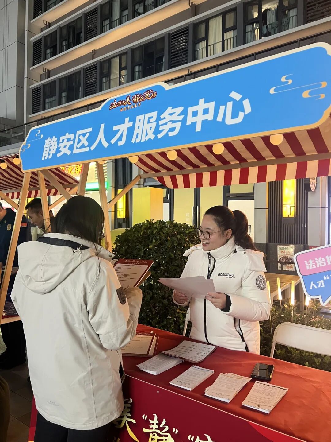 当熙攘的社区集市遇上专业的人才政策咨询,一场别开生面的“上门服务”生动诠释了何为“民有所呼、我有所应”。 12月4日寒夜,在静安区司法局和彭浦新村街道联合举办的宪法宣传文化集市上,有一抹亮色格外引人注目——静安区人才服务小分队宣传摊位。这不仅是一个简单的咨询台,更是人才工作者主动变革服务模式的生动缩影。窗口工作人员变身“上门服务专员”,将政策“配送上门”,同时化身“权益守护者”,现场为居民筑牢抵御“人才黑中介”的防火墙,赢得了群众“服务贴心、守护用心”的真诚赞誉。