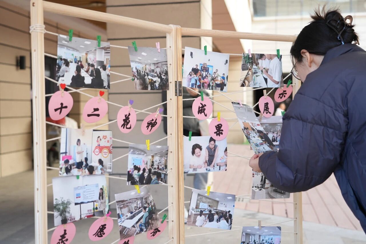 如果说贤才驿站是吸引人才的“强磁场”,那么以“十二花神”志愿服务团队为代表的人才反哺实践,则是社区治理的“新动能”。在集市的志愿服务展示墙前,“十二花神”团队的活动集锦格外引人注目。这支由22名志愿者组成的团队,发起人是上海诺尔康产业园总经理靳阳。