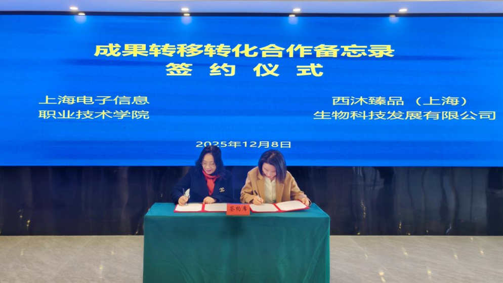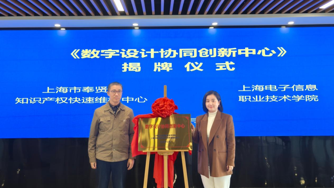 活动现场举行了成果转移转化合作备忘录签约仪式,上海电子信息职业技术学院与西沐臻品(上海)生物科技发展有限公司共同签署文件,标志着高校创意将正式落地产业应用。随后,上海电子信息职业技术学院与奉贤区市场监督管理局(知识产权局)共同为“数字设计协同创新中心”揭牌,搭建起数字化设计创新的实体平台。