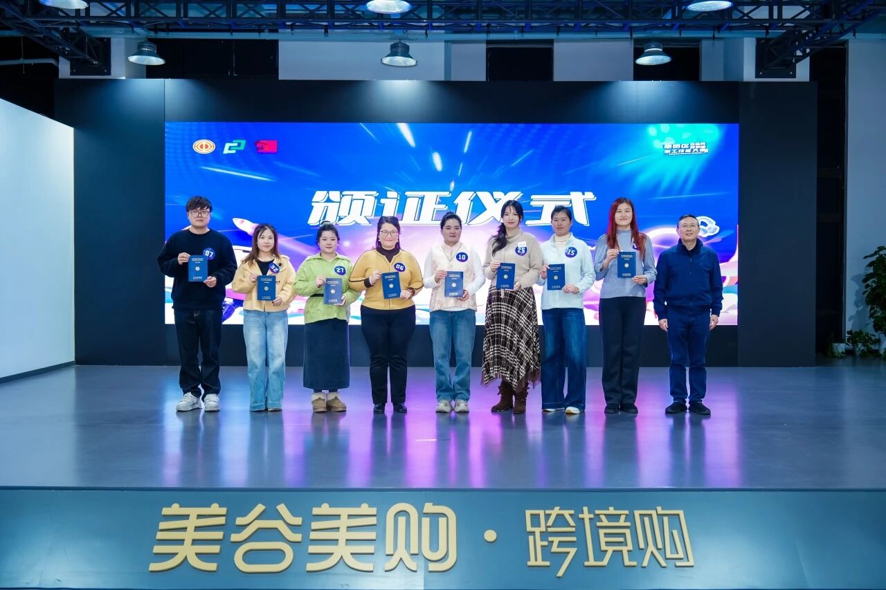 区人大常委会副主任、区总工会主席陆建新为通过互联网营销师职业培训的职工代表颁发技能证书